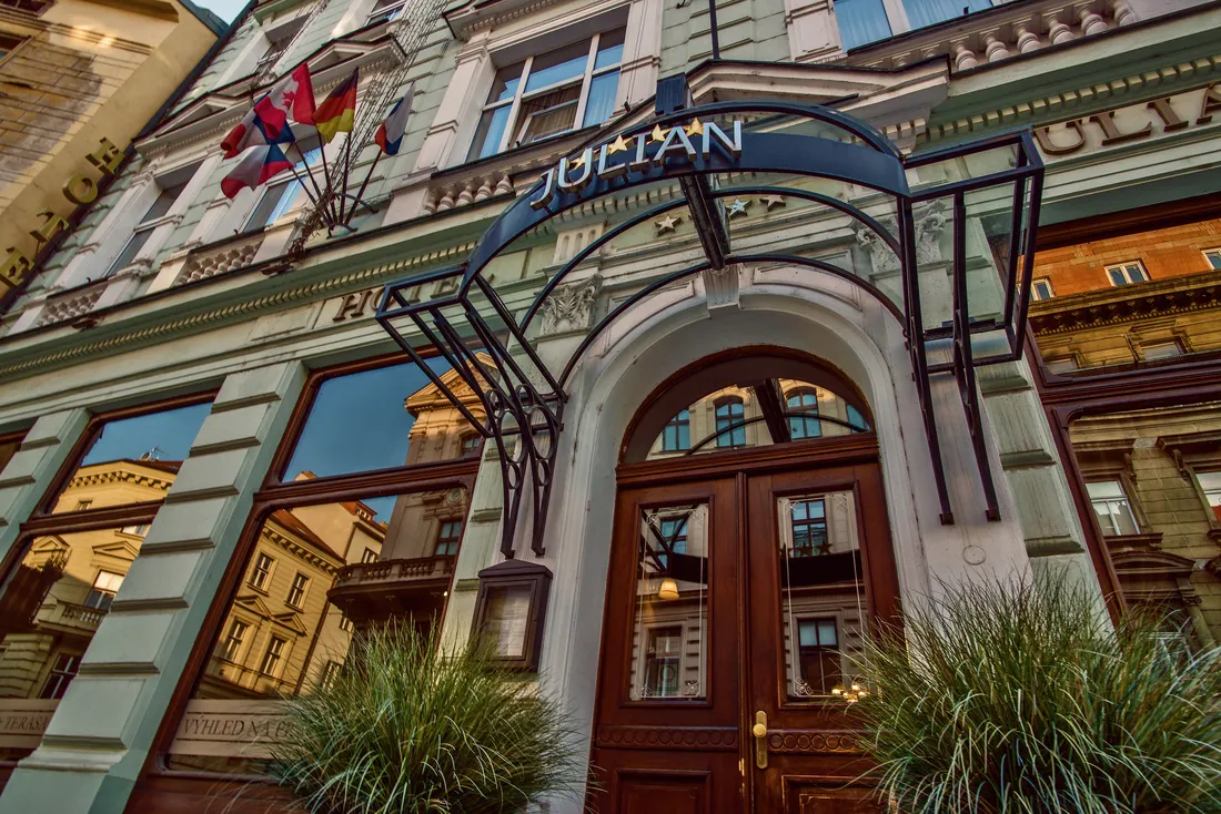 Hotel Julian offers comfortable accommodation in newly refurbished rooms and apartments with air condition and free WiFi. The unique roof terrace provides an amazing view of the Prague Castle and the adjacent gardens. The English style library with a fireplace and the Rose Spa complete family pleasant and unique atmosphere of the hotel.